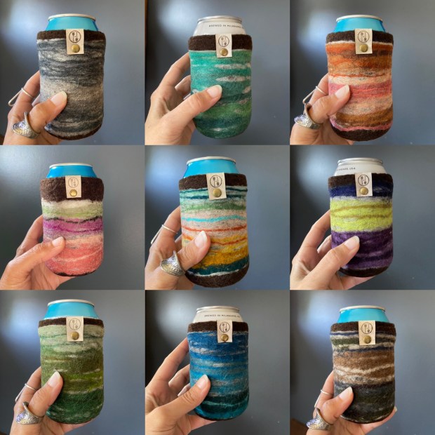 Most koozies are made of environmentally hazardous materials like neoprene or even worse foam. Woolly are hand crafted beer sleeves made from 100% wool, giving you a great tactile feel that never feels wet in your hand. A functional gift that is one of kind, and will last for years.