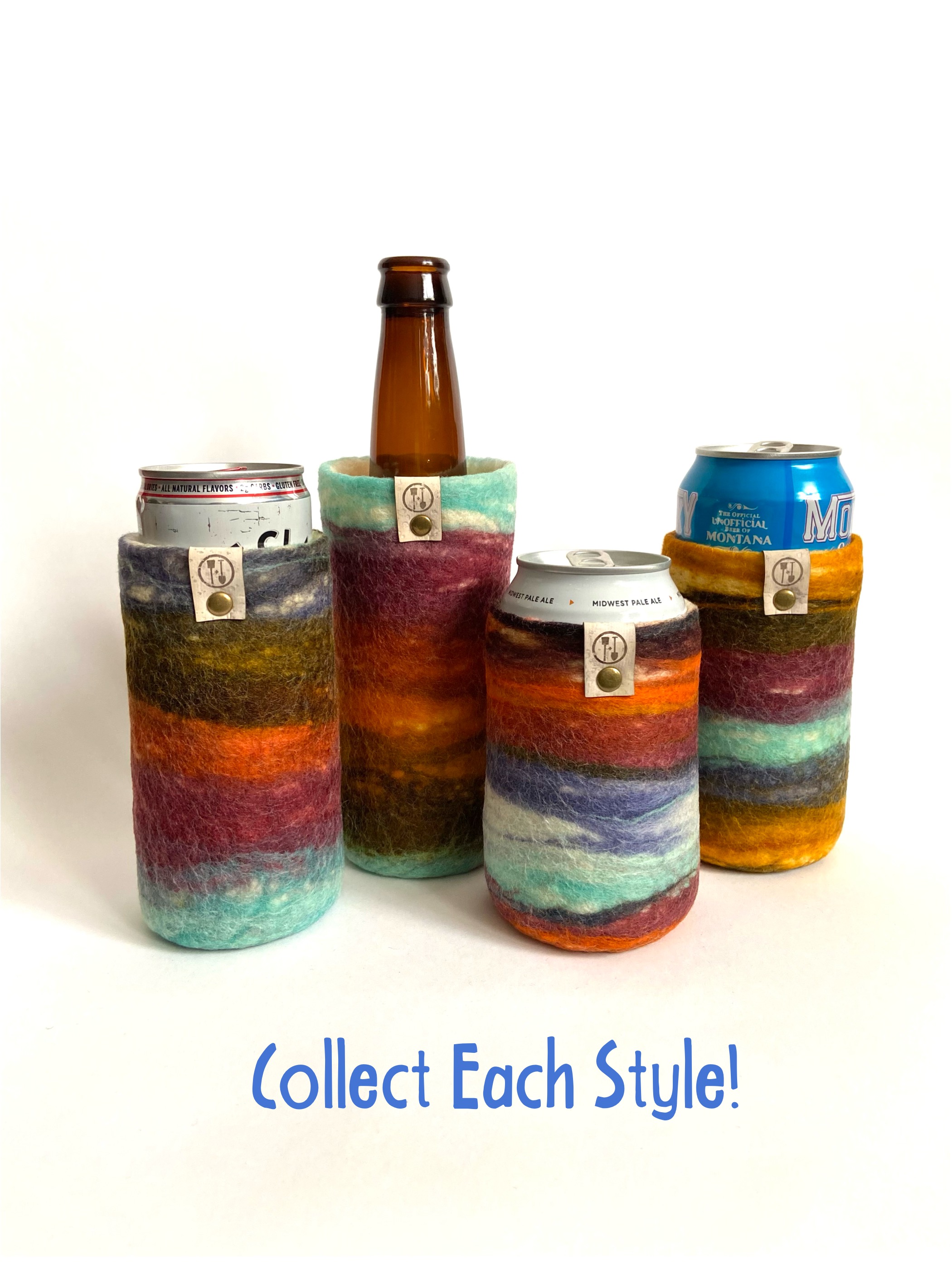 WOOLLYS | HAND FELTED Beer Sleeves | 12 oz + 16 oz + Slim Cans + Bottles
